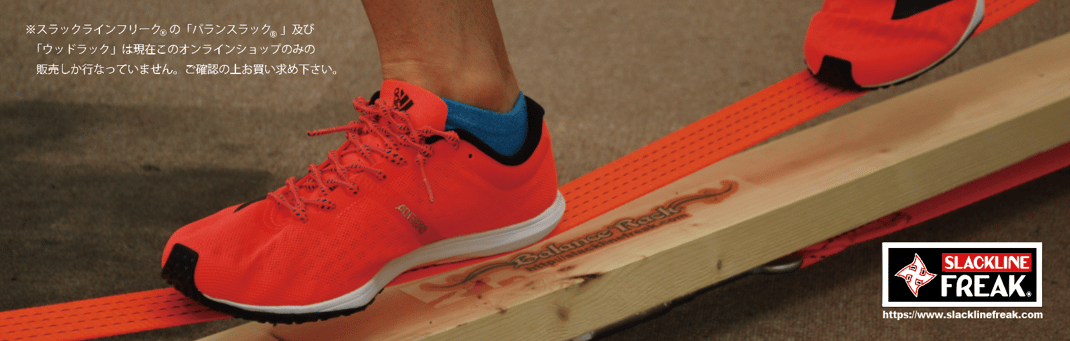 「バランスラック1.6m」は難しいとされているスラックラインの長さや高さを制限することによりスラックラインの「乗り方」の練習「バランストレーニング器具」として発展しました。幼稚園、保育園、児童館、小学校において大人気。単純にバランスを取りながら歩くことにより遊びながらバランス感覚のトレーニングになります。又お年寄りの転倒防止のためのトレーニングやリハビリ等など可能性を秘めた商品です。スラックラインフリークが開発した木製のオリジナル製品です。スラックラインライダー大戸元気選手のバランスラック 乗り方アドバイスを参考にしてください。
