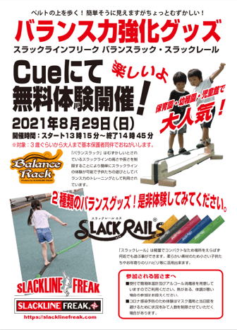 バランスラックやスラックレールを使ったバランス力強化を目的とした無料体験会を開催します。